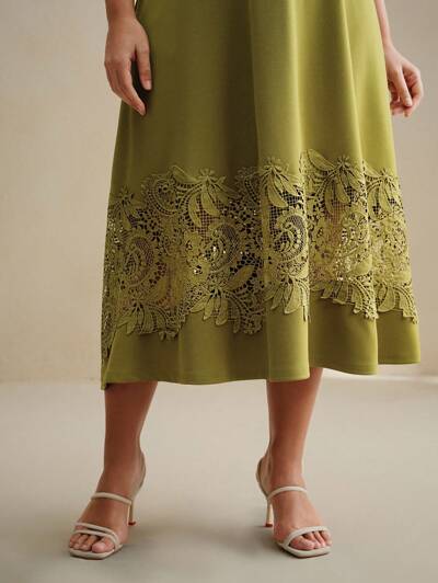 Women's Delicate Lace Patchwork Waist Cinched Dress