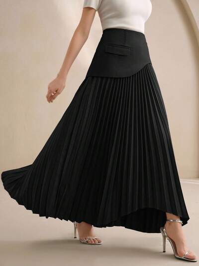 Anewsta Black Fitted Waist Chain & Double Layer Tassel Maxi Skirt, Suitable For Valentine's Day, Spring To Summer
