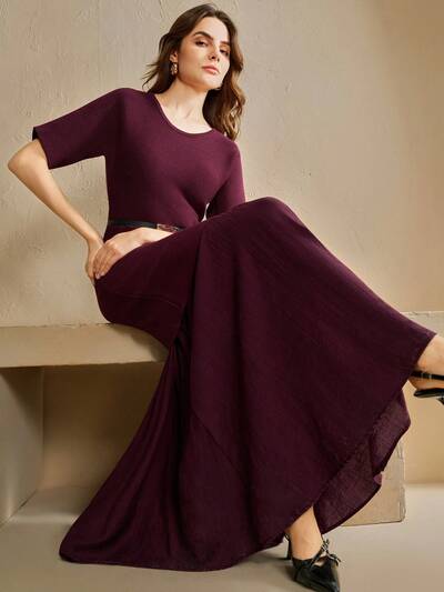 Autumn/Winter New Knitted Pullover Sweater, Minimalist Casual Chic Design, Handmade Jacquard Knit, Loose Fit Crew Neck Sweater Top, Knitwear For Women, Thanksgiving & Christmas