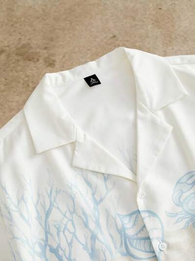 Men's Spring/Summer Vacation Seafood Fashion Printed White Two Pieces Set-36%