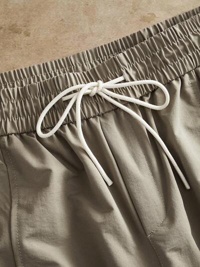 Summer Elegant Elastic Waist Drawstring Multi-Pocket Olive Green Men's Shorts-50%