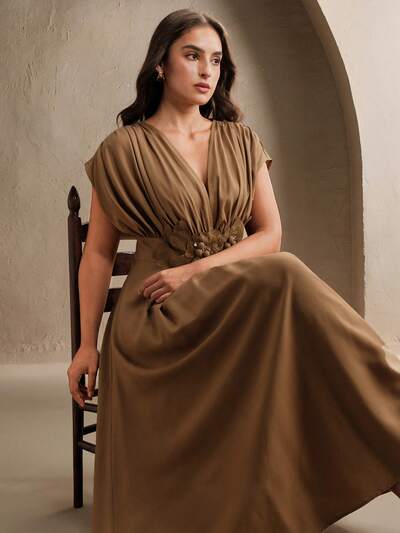 Elegant Floral Decor Waist Ruched Design Dress, Figure-Flattering, Suitable For Resort, Beach, Vacation, Spring/Summer, Festival, Graduation, Plus Size-25%