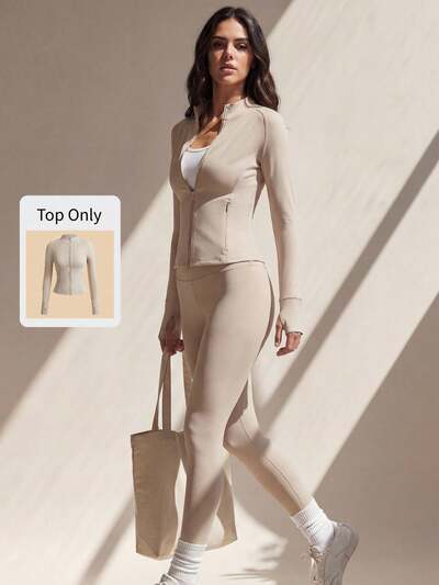 Women's Stand Collar Zipper Yoga Jacket, Long Sleeve Stretchy Fitness Cycling Tight Workout Outerwear