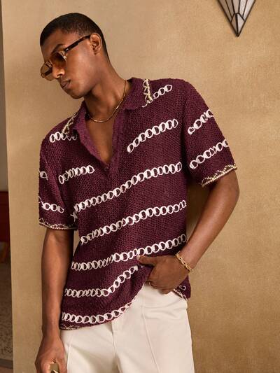 Men's Fitted Turndown Collar Knit Pullover Suitable For Summer