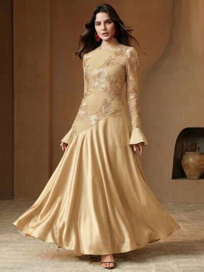 Elegant Luxury Lace Patchwork Slim Fit Long Dress, Suitable For Spring To Summer, Elegant Dresses For Party, Elegant Dresses For Women, Floral Dresses For Women, Elegant Dresses For Party