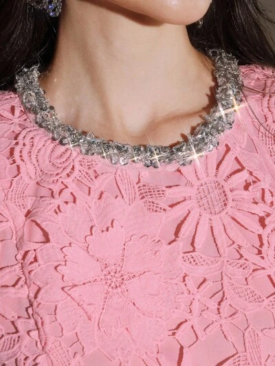 2pcs Set: Textured Embossed Jacquard Elegant Commuter French Style Blouse And Midi Skirt