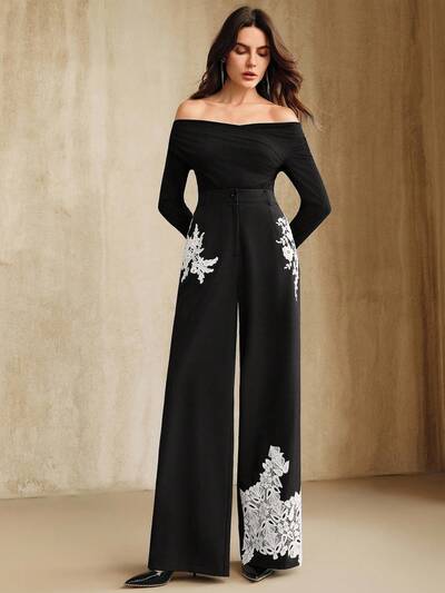 Black & White Contrast Elegant Office Commute Fashion Versatile Patchwork Lace High Waist Slimming Straight Leg Women Pants-36%