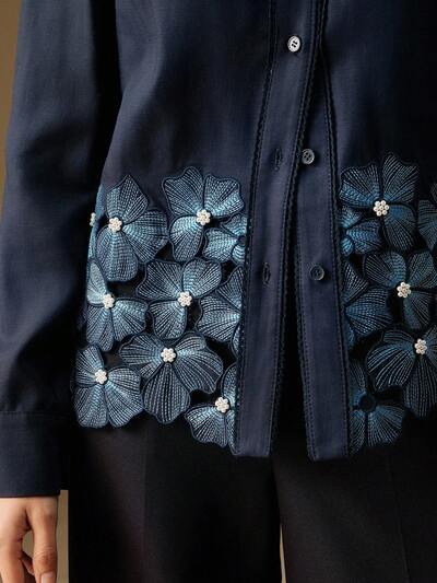 Elegant Women's Fashion Commuter Floral Decor Design Long Sleeve Blouse, Suitable For Spring, Summer, Valentine's Day, Party