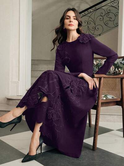 Women's Elegant Luxurious Exquisite 3D Floral Embroidery Fitted Dress, Dignified And Charming, Suitable For Autumn, Winter, Going Out, Elegant, Formal, Party, Chic, New Year, Christmas, Work, Graduation, Wedding