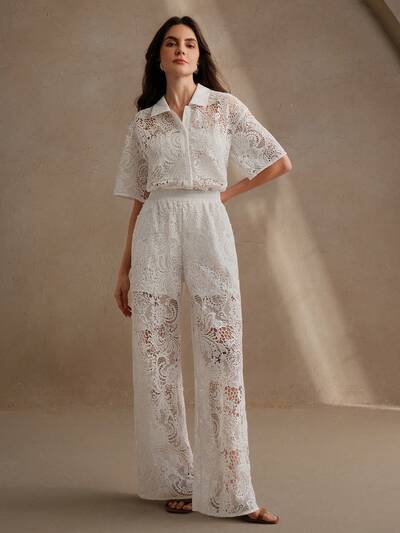 Women Elegant Scoop Neck Embroidered Lace Hollow-Out Floral Trim Crochet Top, T-Shirt Cover Up, Suitable For Beach, Festival, Holiday, Casual, Resort, Summer-34%