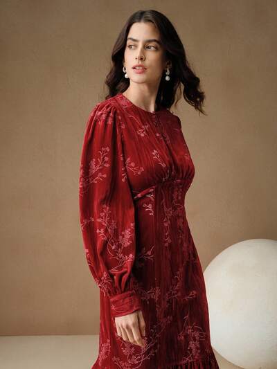 New Elegant Vintage Velvet Jacquard Puff Sleeve Fishtail Dress, Suitable For Fall, Winter, Spring, New Year, Party, Wedding, Elegant, Chic, Stylish, Christmas-23%