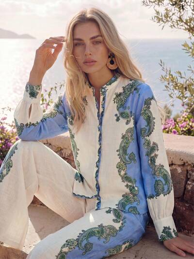 Anewsta Women Plus Size Elegant Long Sleeve Beaded Embroidery Pattern Blouse-30%