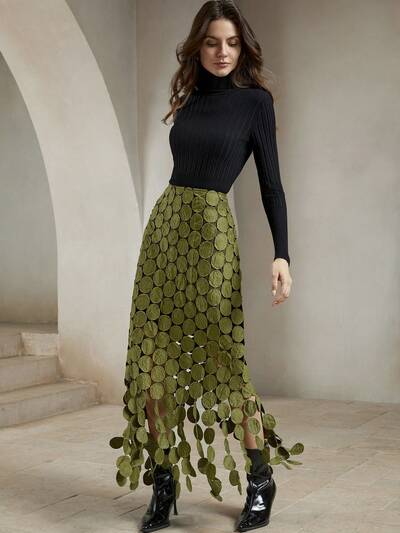 High-Quality New Standard Size Women's Fashion Contrast Color Hollow Embroidered Vintage Elegant Ladies' Skirt, Suitable For Valentine's Day, Summer Holidays, Spring Break