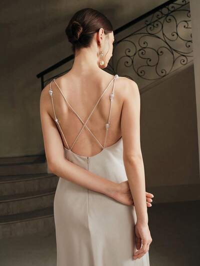 Vacation Style Wedding Party Sexy Spaghetti Strap Backless Pearl Decor Satin Maxi Dress For Women-23%