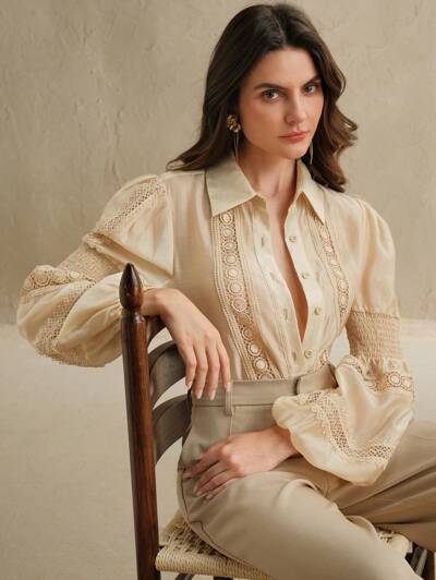 Women's Elegant & Knowledgeable Button-Up Long Sleeve Blouse, Spring/Summer