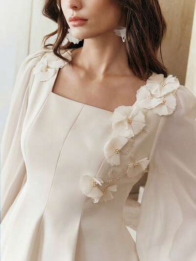 Women's Elegant Fashion New Year Holiday 3D Floral Embroidery Decor Long Sleeve Dress For Dates & Parties, Spring/Summer-58%