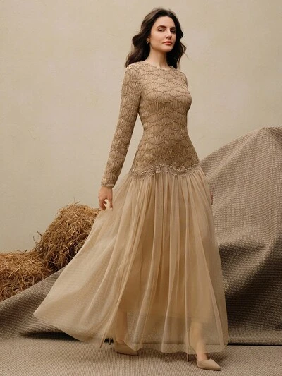 Anewsta Casual Long Sleeve Women Sweater, Crochet Style With Hollow Tree Pattern, Casual