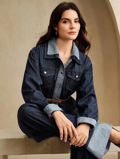 Women's Autumn Dropped Shoulder Long Sleeve Single-Breasted Rhinestone Embellished Loose Casual Denim Jacket