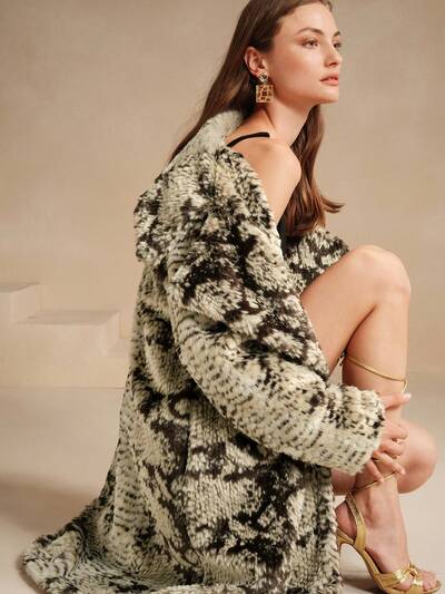 Women's Fashion Fluffy Snake Skin Textured Long Coat, Autumn/Winter-60%