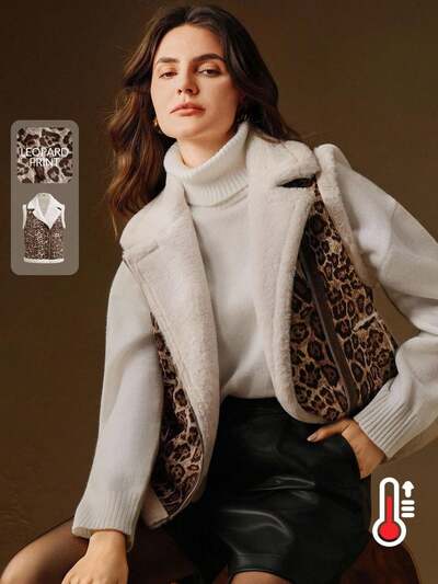 Women's Leopard Print Composite Vest, Suitable For Autumn, Fall, Winter, Going Out, Elegant, Formal, Party, Chic, New Year, Women's Winter Coat, Christmas, Work, Graduation, Wedding-25%
