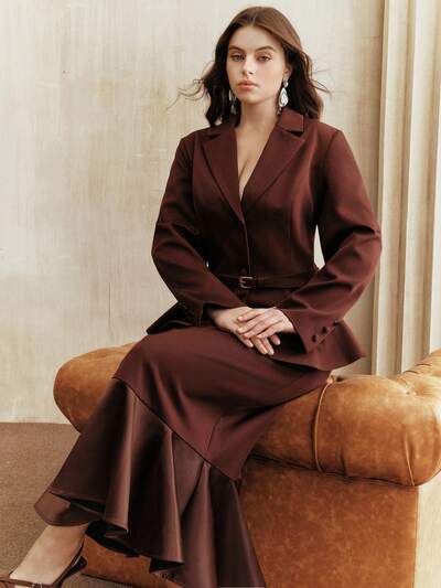 Plus Size Women's Elegant Two Pieces Set: Cinched Waist Blazer Jacket + Skirt, Suitable For Commuting, Winter, New Year, Fall, Winter, New Year, Party, Wedding, Elegant, Chic, Stylish, Casual, Christmas, Formal, Business Casual