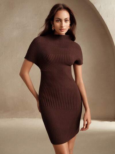 Women Elegant Asymmetric Mock Neck Fitted Sweater Dress, Suitable For Spring, Summer, Elegant, Vacation, Date Night-39%