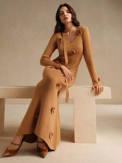 Elegant V-Neck Floral Crochet Maxi Fishtail Dress-60%