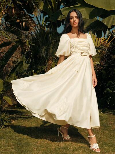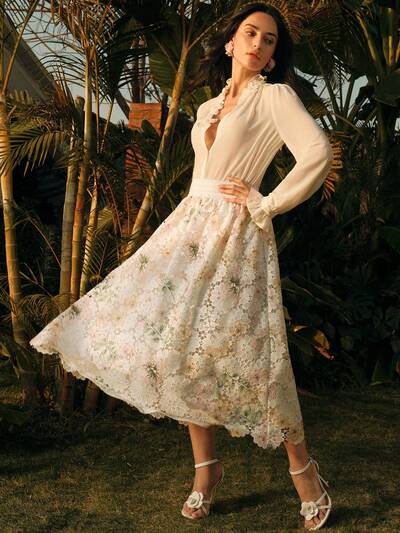 Elegant Romantic Khaki Print Woven Day-To-Day Commuting & Party Skirt For Women, Spring/Summer, Modesty Clothes