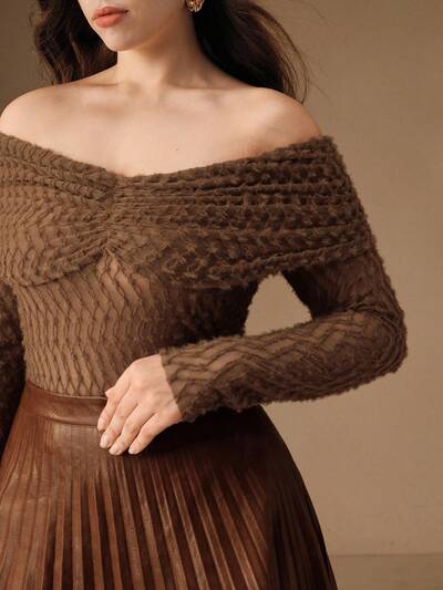 Top de manga larga con hombros descubiertos y textura suave y atractiva para mujeres de talla grande