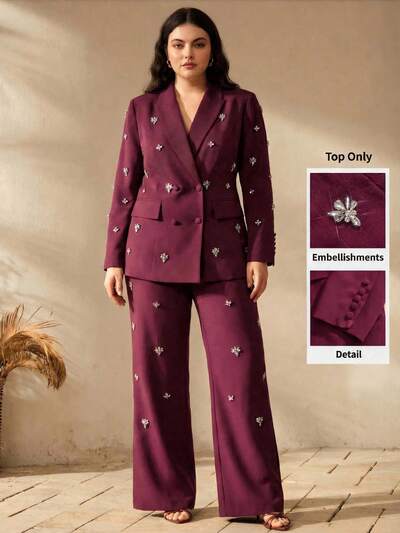 Chaqueta de blazer elegante, formal y de lujo con cintura adornada y ajuste ceñido para mujeres de talla grande, adecuada para fiestas, trabajo, graduación, bodas, etc.-25%