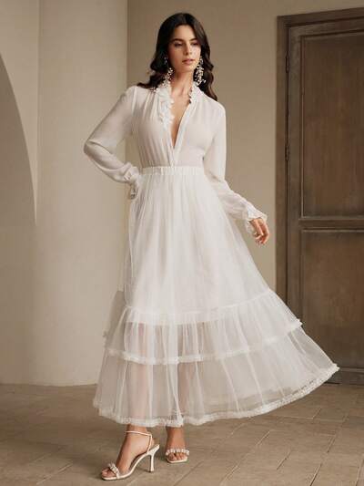 Falda de línea A ancha y suelta con malla, estilo de vacaciones en la playa, romántica para el Día de San Valentín para damas
