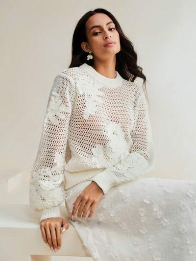 Suéter holgado de punto con bordado calado, otoño e invierno