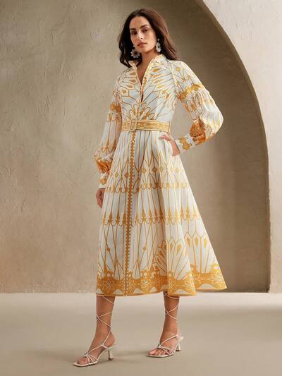 Anewsta Elaire Vestido largo de manga larga con cuello alto estampado, estilo palacio francés para mujer