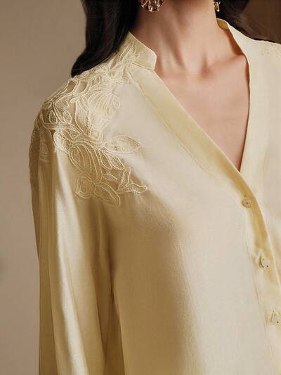 Nueva camisa de mujer elegante con diseño de bordado, color amarillo mantequilla, para primavera/verano