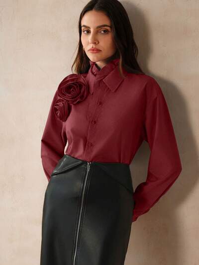 Blusa semitransparente para mujer con bordado elegante de rosa y cuentas de perlas al estilo francés