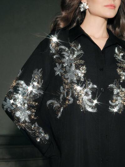 Blusa de manga larga con botones y decoración de rhinestones elegante para el trabajo