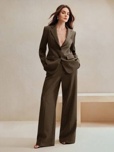 Anewsta Essential 2 piezas Conjunto de traje elegante de mujer en color Maillard: Chaqueta tipo blazer + Pantalones de pierna recta, adecuado para otoño, salir, formal, fiesta, elegante, Año Nuevo, Navidad, trabajo, graduación, boda