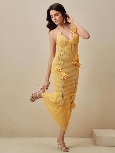 Cubridor de ganchillo con flores 3D huecas, estilo de resort, verano, playa, elegante