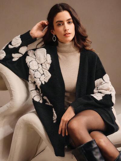 Cárdigan floral jacquard de corte holgado y elegante vintage, de longitud media, de lana, para otoño/invierno