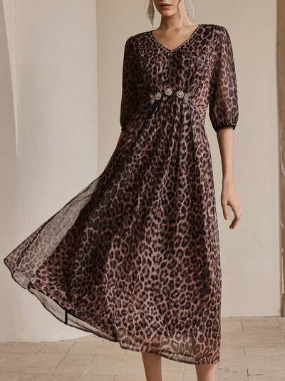 Vestido con estampado de leopardo, de malla suave y decorado con rhinestones, atuendo para primavera/verano