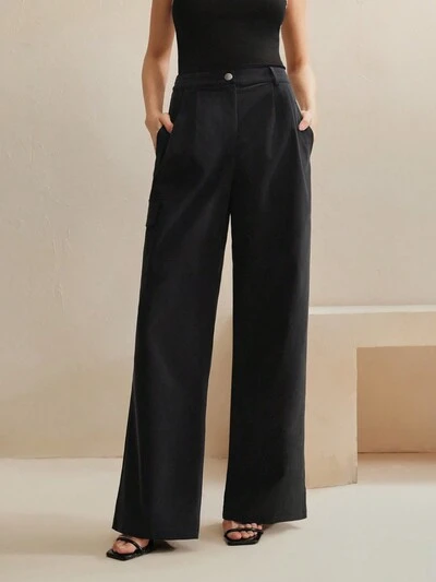 Pantalones cargo casuales de mujer, pantalones rectos de alta calidad con cintura elástica y pliegues