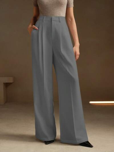 Pantalones de traje de pierna ancha de moda minimalista para mujer, conjunto de ropa casual de oficina para primavera y verano