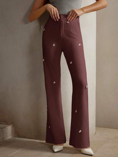 Pantalones de negocios casuales elegantes y modernos con decoración de rhinestones en corte evasé, para primavera/verano para mujeres