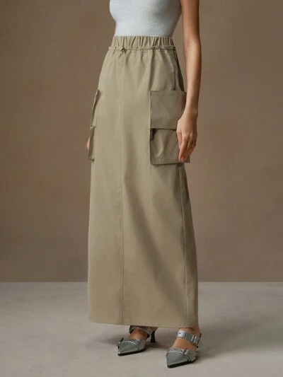Falda cargo recta y casual con bolsillos, cintura elástica maxi