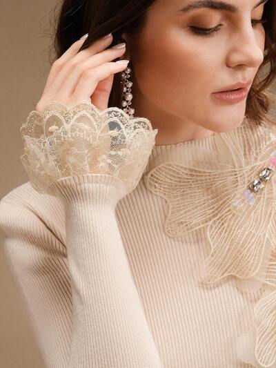 レース アプリケ 長袖 フィッティング エレガントセーター レディース-35%