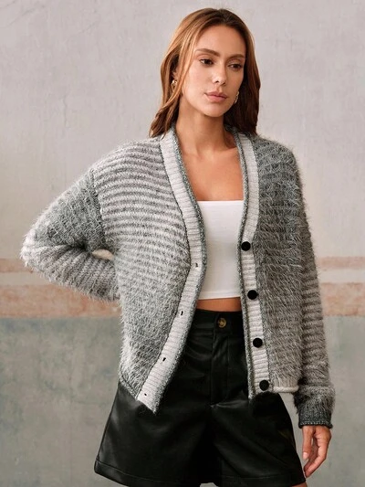 秋冬ファッション グラデーション コントラストカラー ニットカーディガン-23%