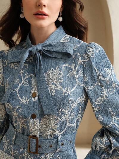 Anewsta エレガントなラウンドネック リボン 長袖 ウエストシェイプ 刺繍 ビーズ付きジャンプスーツ ユーティリティデザイン レディース-32%