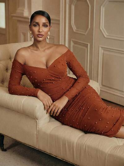高品質 新作 エレガントでセクシーなバブルデザイン ロングスリーブ レディースドレス-21%