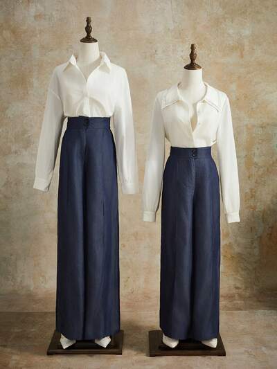 ハイウエスト ワイドレッグ エラスティック ウエスト カジュアルパンツ レディース-23%