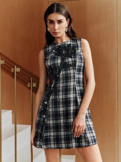 女性用エレガントラグジュアリーPUスタッズパールエンベリッシュドレス-52%
